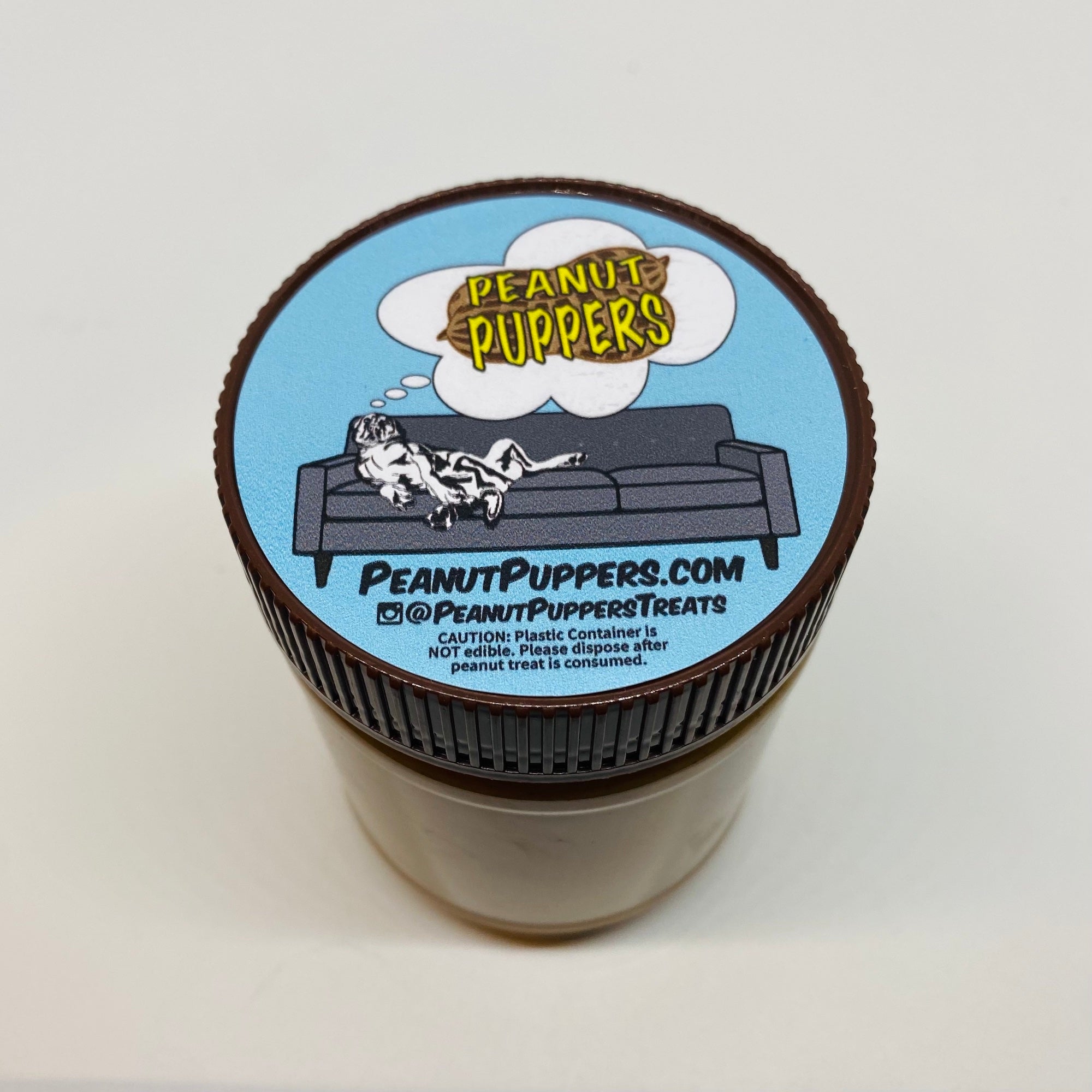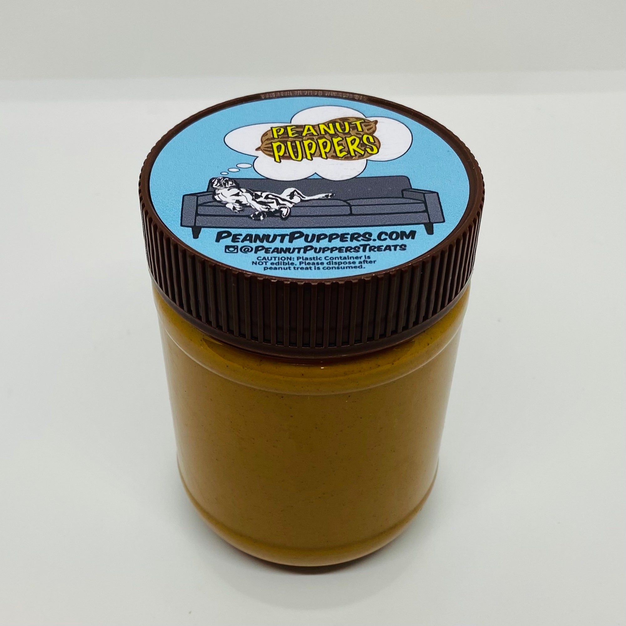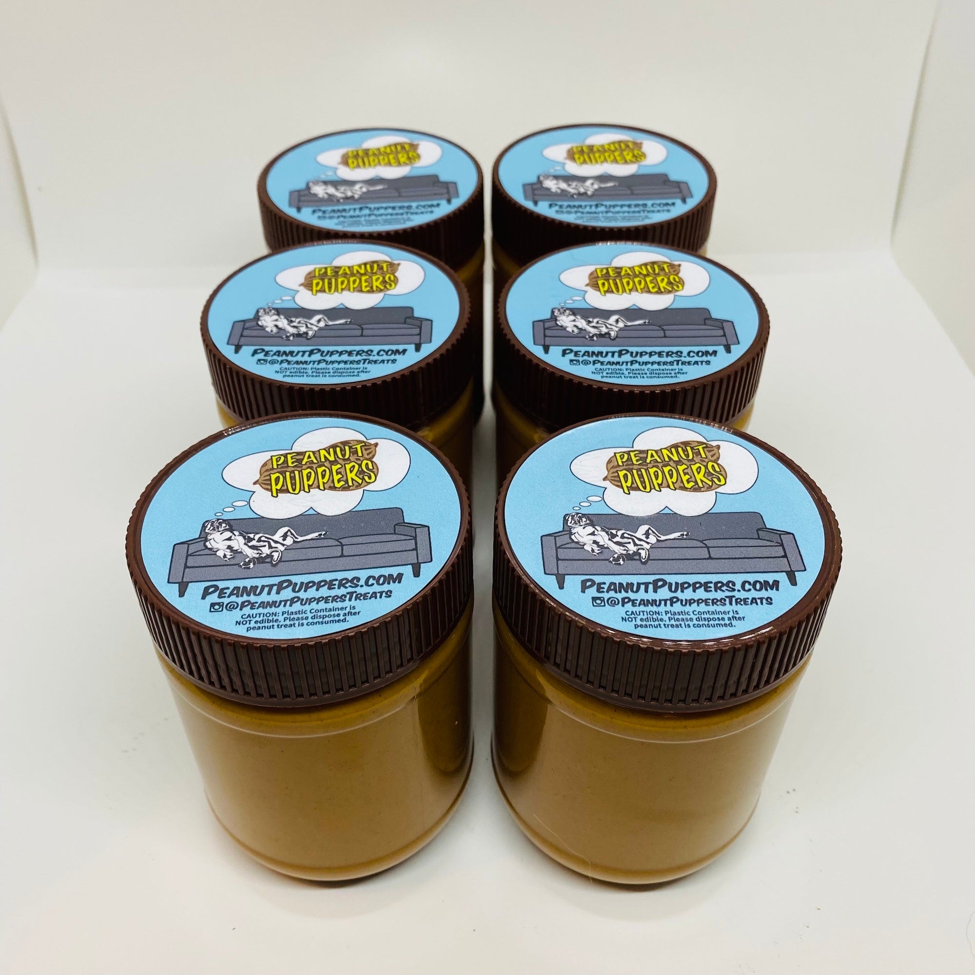 A 6-pack of our famous PeanutPuppers dog treats. Each freshly sealed jar holds 2 tablespoons of our famous natural gourmet peanut butter treat. Your dog will waste no time in diving into our perfect snack portion, and will come back begging for more! Don't say we didn't try to warn you! Woof!